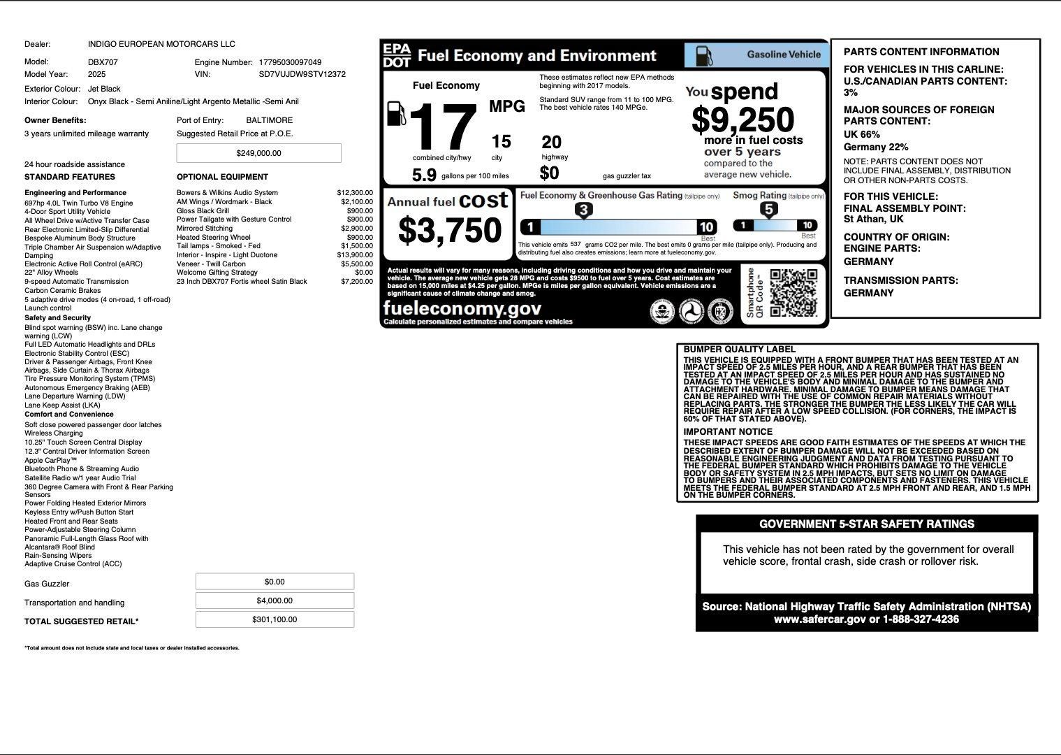 • Smoked Tail Lamps: A subtle yet striking design element that complements the DBX 707s high-performance look.